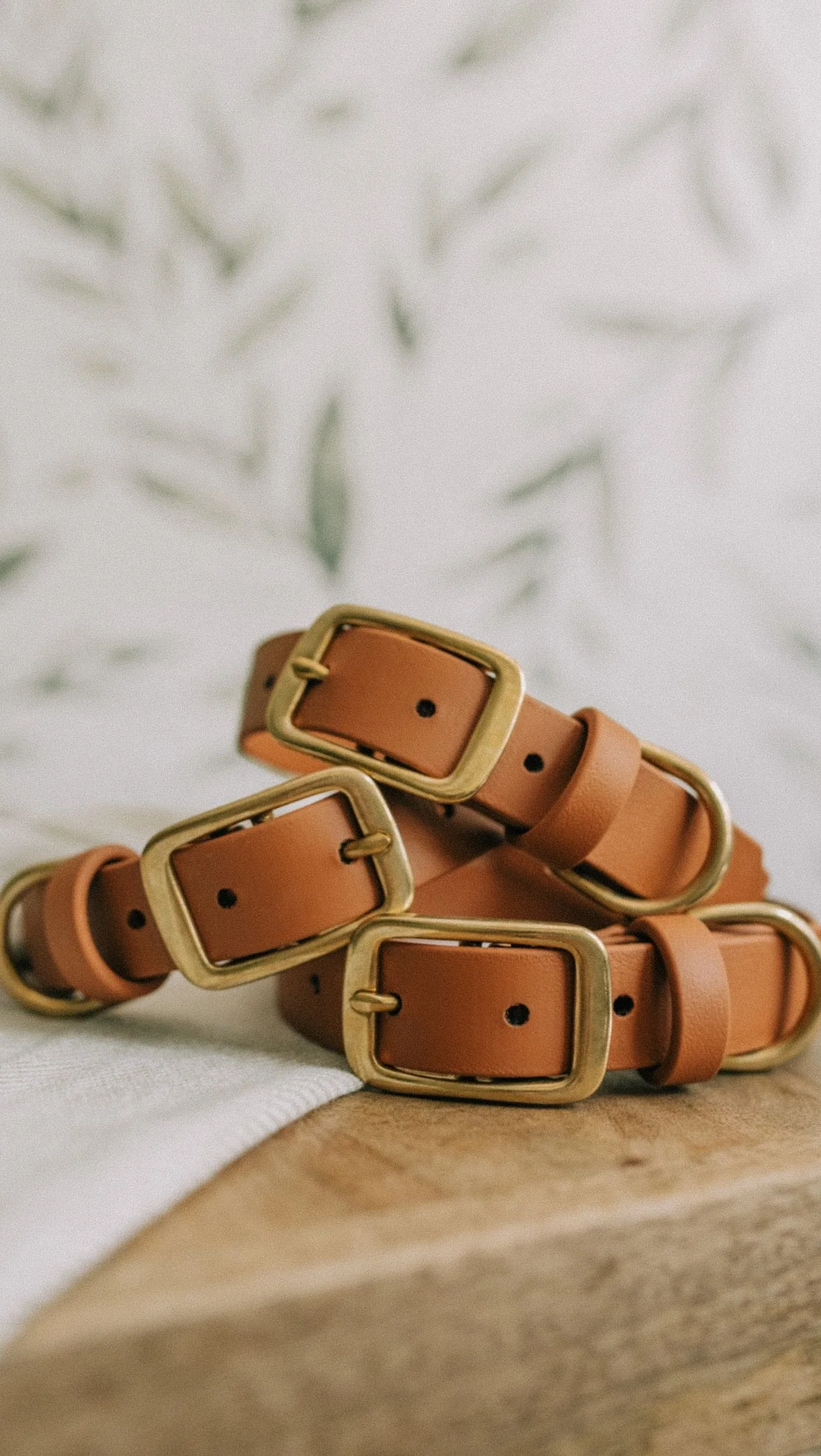 Our collars and leashes feature 100% solid brass hardware, which is not only sturdy but also resistant to rust and corrosion. This means they’ll maintain their shine and functionality over time, even with regular use in various weather conditions.